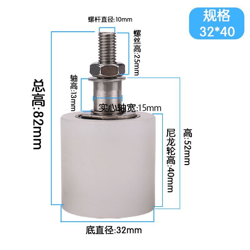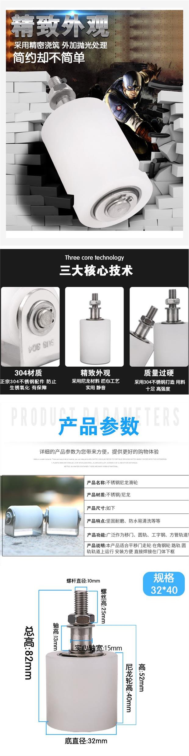 產品主要參數: 規格:32*40 材質:SUS 304不銹鋼 總高:82MM 尼龍輪高:40MM